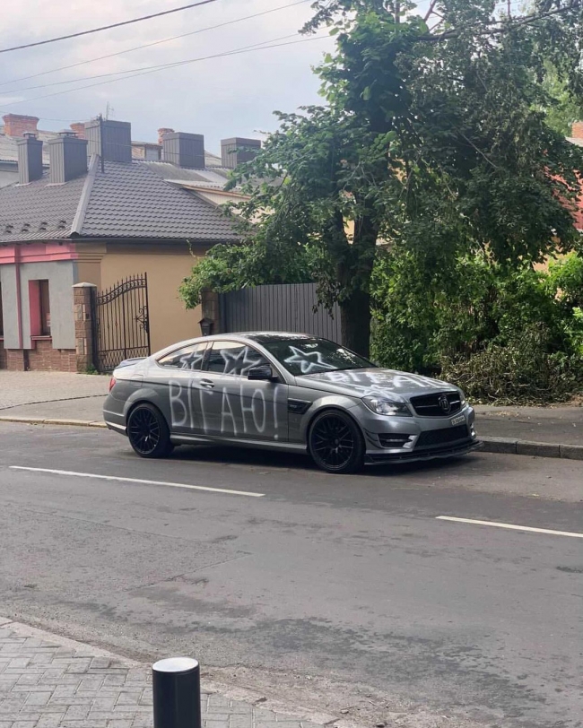 Як видно з фото, опублікованого в Instagram-спільноті “tvoe_rivne”, машину білою фарбою розфарбували зірочками, а на бокових дверях та на капоті написали слова “вітаю”.
