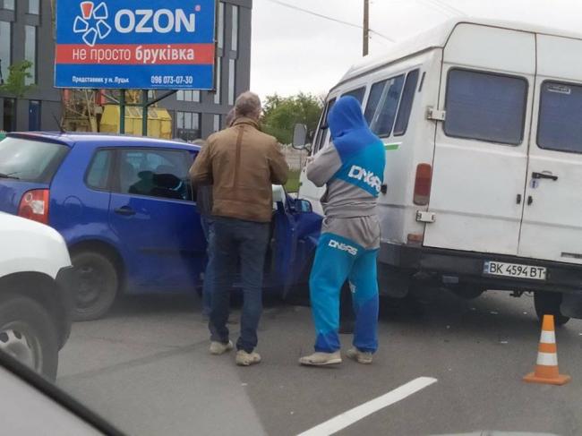 Як видно на фото, не розминулися легковий автомобіль та мікроавтобус.