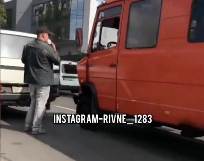 Як видно з відео, яке опублікували в Instagram-спільноті “rivne_1283”, маршрутка зіткнулась з іншим транспортним засобом.