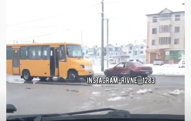 Як видно з відео, яке опублікували очевидці, маршрутне таксі зіткнулося з легковиком.