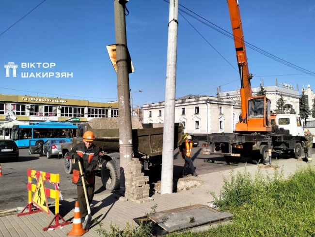 – Це вже сьома опора, яка підлягала заміні цього року. Після набрання міцності бетонного фундаменту на неї буде перенесено кріплення контактної мережі тролейбусів та вуличний світильник.