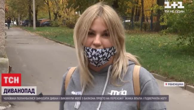 Як повідомляє «ТСН», на Ірину впав диван, коли вона йшла на роботу. Його викинули чоловіки з балкону третього поверху, бо ліньки було нести сходами.