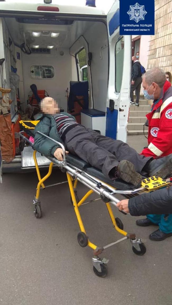 Інспектор патрульної поліції Володимир Петровський негайно почав надавати йому домедичну допомогу та викликав карету швидкої медичної допомоги. Тепер 84-річний рівнянин перебуває під опікою лікарів.
