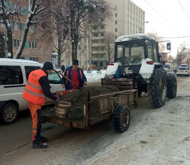 Найбільш небезпечні ділянки доріг оброблюються протиожеледними засобами.