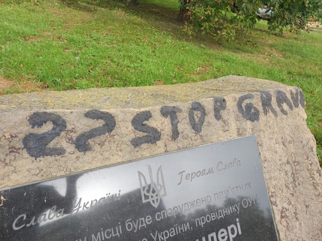 – Помітила, що наріжний камінь Степану Бандері, а також вхід до парку ім. Т.Г. Шевченка невідомі спаплюжили своїм розписом. І це все у людному місці… і ця мерзота вільно ходить нашим містом.