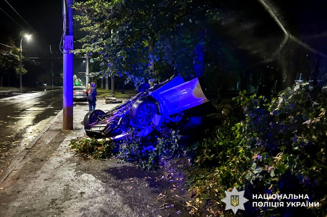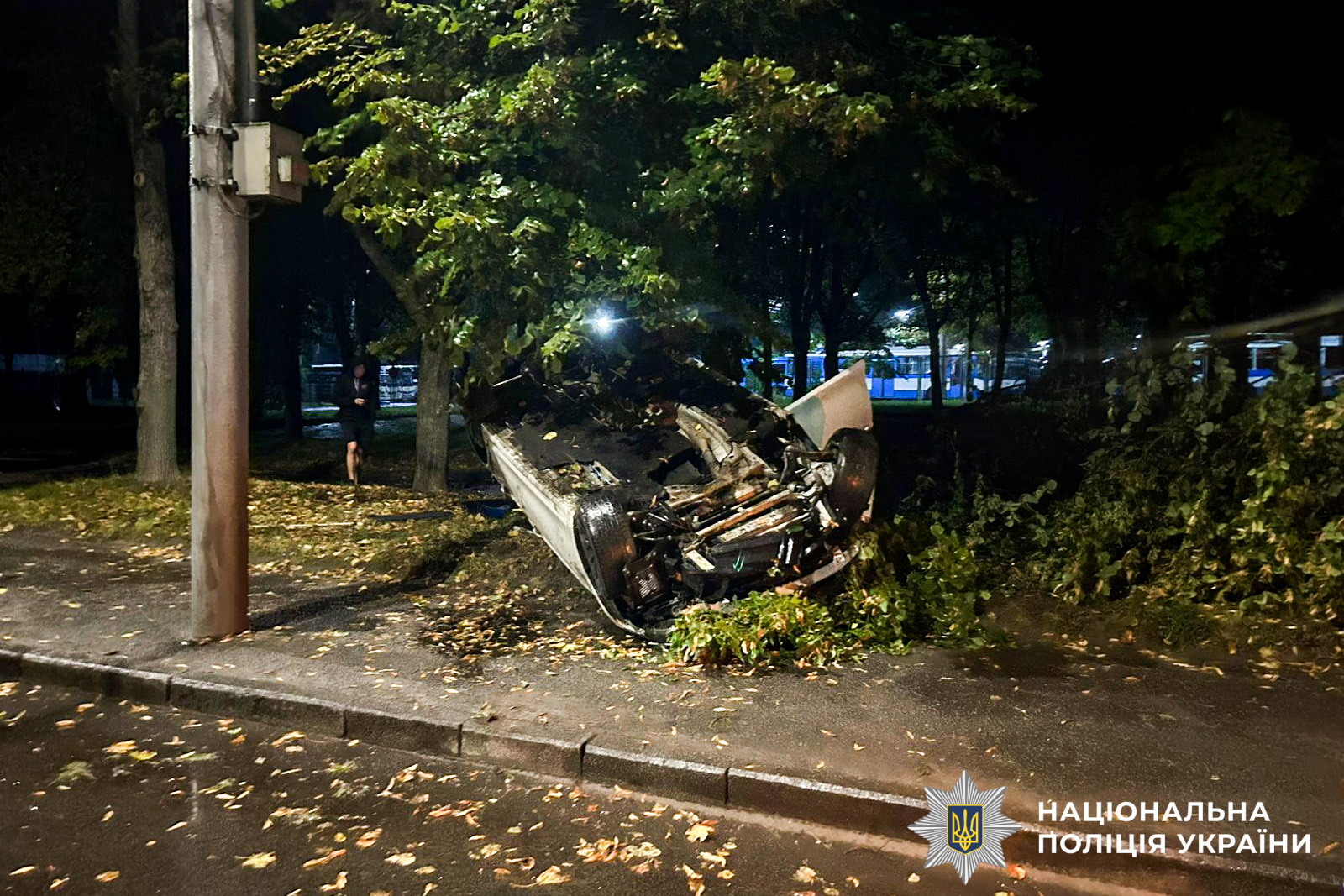 Авто «BMW» на швидкості врізалося у дерево та перекинулося, повідомляє поліція області.