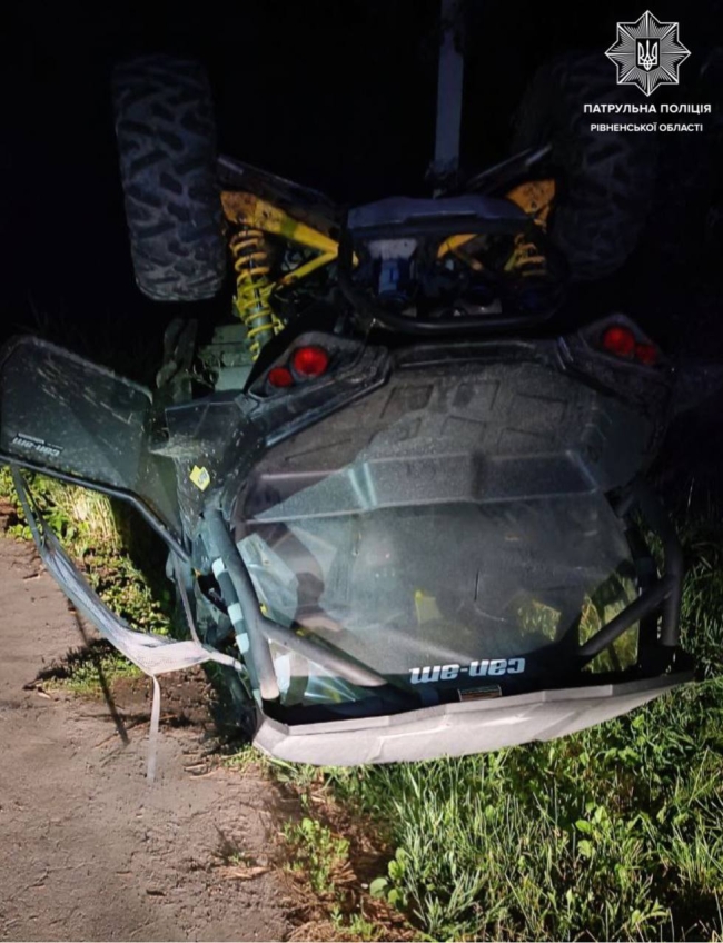 – На місці події патрульні з’ясували, що водій не був уважним і не стежив за дорожньою обстановкою. Як наслідок — баггі перекинувся та отримав механічні пошкодження. Допомога медиків, на щастя, нікому не знадобилася, – розповіли у патрульній поліції Рівненщини.