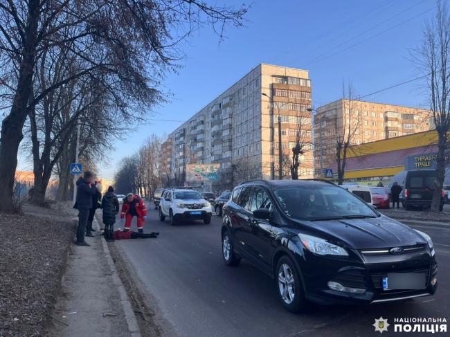 Попередньо відомо, що водій автомобіля «Ford» допустив наїзд на жінку, яка переходила проїзну частину по нерегульованому пішохідному переходу.