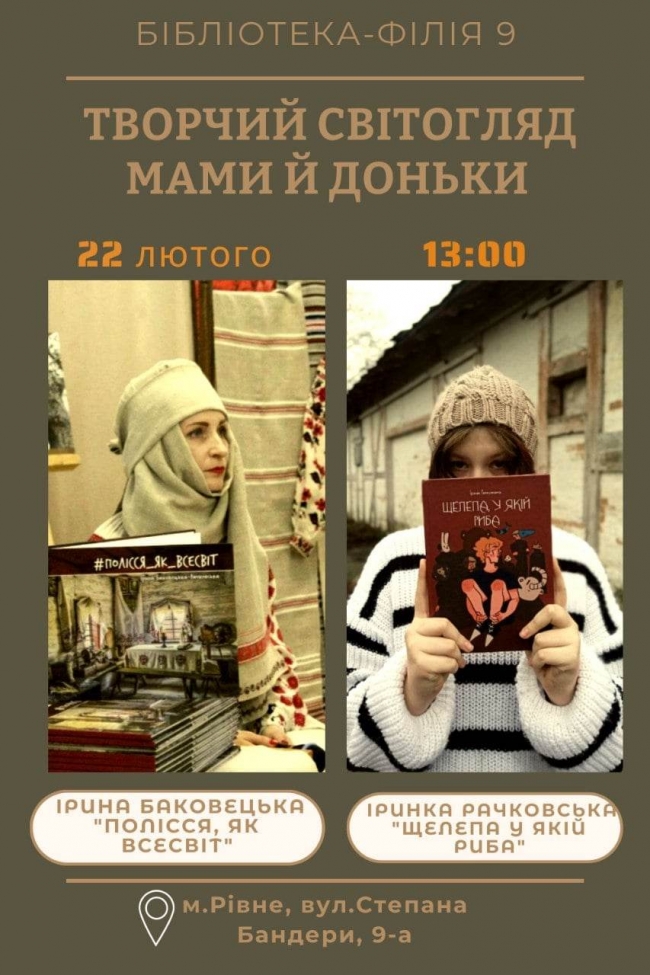 Письменниця Ірина Баковецька презентує арт-бук «Полісся як Всесвіт», а її донька Ірина Рачковська презентує книгу «Щелепа, у якій риба».