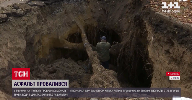 Провалля діаметром кілька метрів утворилося на пішохідній частині. Метрів 6 завглибшки.