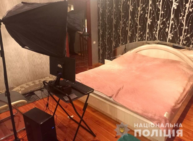 Правоохоронці знайшли у кожній із шести кімнат дворівневої квартири облаштоване місце для проведення порнозйомки, а навпроти — монітор із камерою та відповідне технічне обладнання.