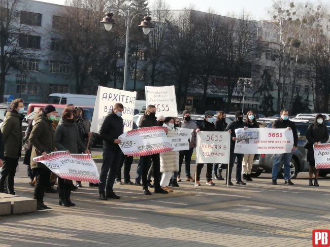 Сьогодні під вікнами облдержадміністрації зібралось понад тридцятеро архітекторів, проектувальників та громадських активістів. Поюснюють, що вийшли на підтримку своїх колег у інших містах, де сьогодні опівдні проходить всеукраїнська акція протесту. Адже зміни у будівельному законодавстві позбавляють їх права здійснювати авторський нагляд за своїми проєктами та хоч якось впливати на кінцевий результат. Так само і місцева влада не зможе впливати на недобросовісних забудовників.
