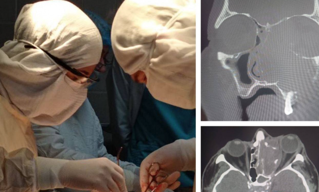 «Основною метою хірургічного втручання був порятунок життя пацієнту. Складність даної операції полягала у тому, що процес із верхньощелепної пазухи зліва поширився у ліву лобну пазуху, носоглотку, решітчастий лабіринт, орбіту зліва та порожнину черепа. Вищесказане обумовило необхідність багатоетапного оперативного втручання, а саме: перев’язку зовнішньої сонної артерії зліва, гайморотомію зліва по Денкеру, ринотомію по Муру, резекцію верхньої щелепи зліва, видалення пухлини верхньощелепної пазухи та орбіти зліва», — йдеться в повідомленні.