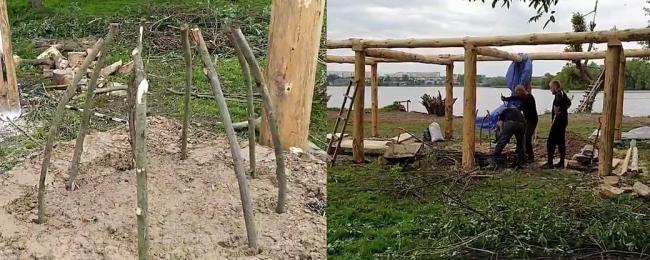 Дерев’яний каркас, під яким монтують піч – це майбутня альтанка. Її стилізують під давньоруську.