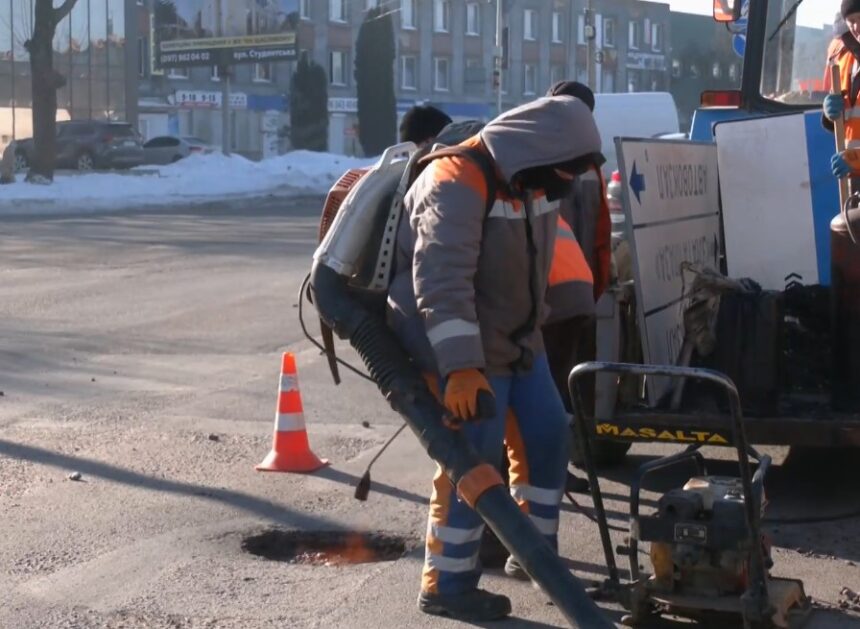 Попри великі морози, працівники ШЕУ виконують ямковий ремонт.