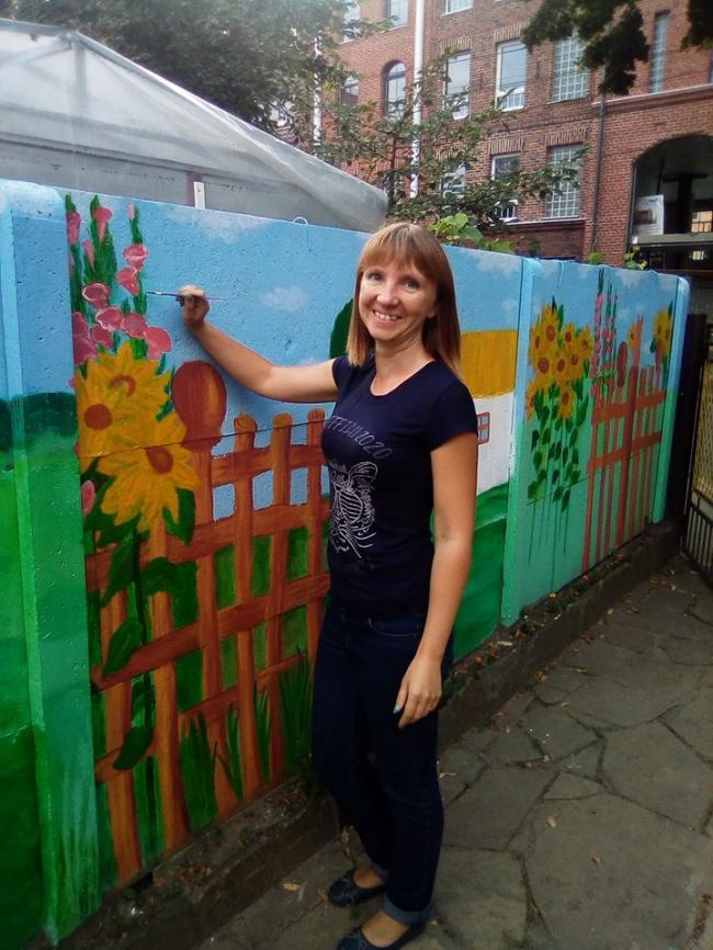 «В процесі створення чарівної краси на паркані для чудової родини! Дощ трішки вносить свої корективи, але розпис 12-метрового паркану наближається до завершення», – розповіла художниця.