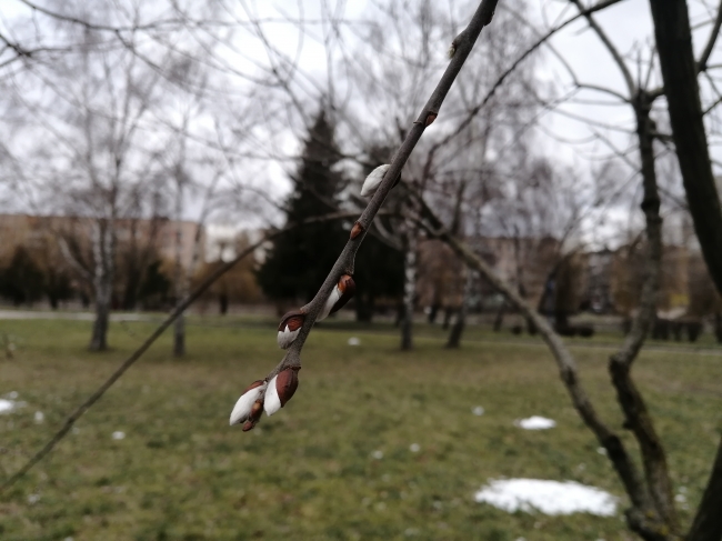 У сквері на вулиці Набережній несподівано “прокинулася” верба. Незважаючи на мороз на одному з дерев на алеї з’явилися бруньки – геть на усіх гілках. Що цікаво, інші верби поруч не вийшли з зимової сплячки.