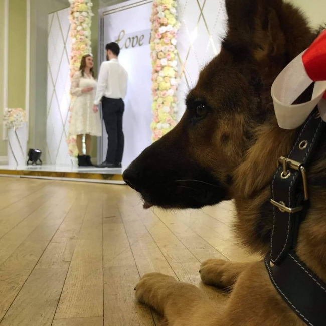 Як повідомляють на сторінці Будинку культури в Instagram, Тимур і Наталія взяли на церемонію німецьку вівчарку Санту.