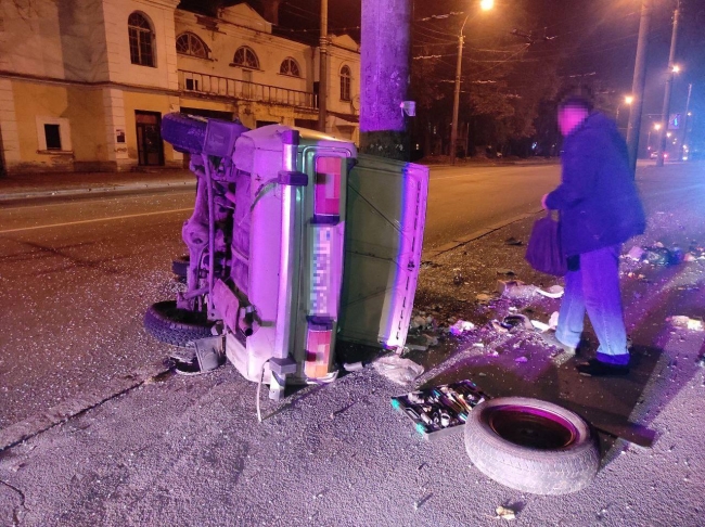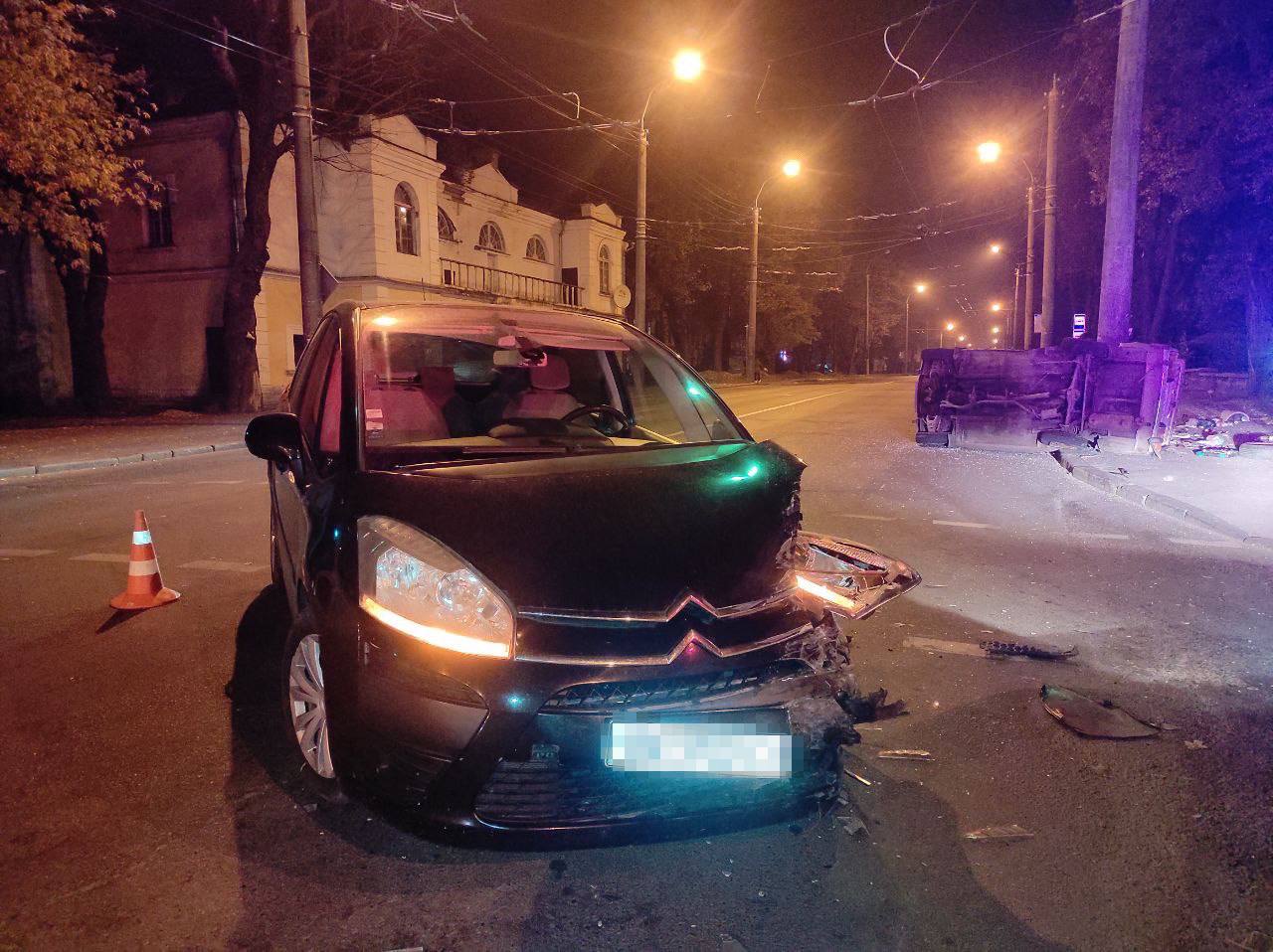 Біля костелу зіткнулися два легковики, внаслідок чого автомобіль ВАЗ перекинувся та влетів в електроопору.