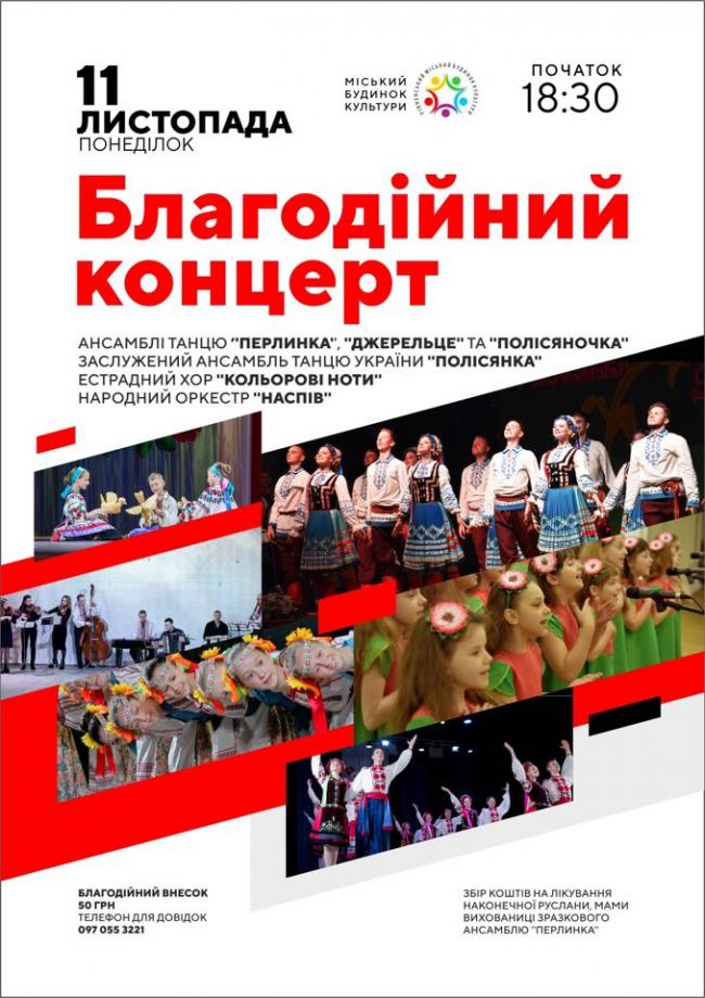 Благодійний внесок 50 гривень. Телефон для довідок 097 055 32 21.
