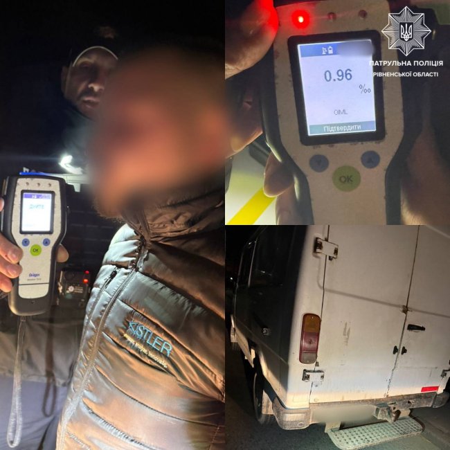 – Під час перевірки документів в 20-річного водія патрульні виявили ознаки алкогольного сп’яніння. Результат огляду виявився позитивним: 0,96 проміле, – розповіли у патрульній поліції Рівненщини.