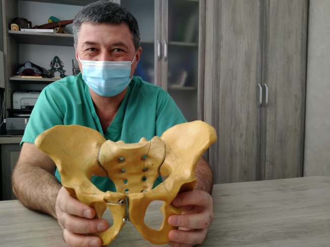 — Робимо надзвичайно складні операції на тазу. Бо ці ушкодження вкрай важкі. Їх отримують в основному в ДТП чи при падінні з великої висоти. Це переважно кататравма. Таз має складну геометричну форму, і там дуже багато структур, які не хотілося б зачепити під час операції — внутрішні органи, спинний мозок. При переломах кісток таза він скріплюється спеціальними гвинтами, які треба протягнути через невелику товщину кістки. При тому всьому потрібно, щоб операція була якомога менш травматичною. В закритому режимі виводимо фрагменти, стараємося добре зафіксувати ушкоджені елементи під контролем рентгену. Гвинт залишається в кістці назавжди. Це насправді ювелірна робота. Проте навіть і палець скласти — ювелірна робота, як і вся хірургія загалом.