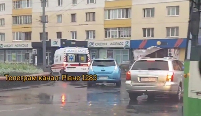 На місці події працюють патрульні поліцейські та слідчий Рівненського райуправління поліції. Керманич легковика на місці події та спілкується із правоохоронцями.