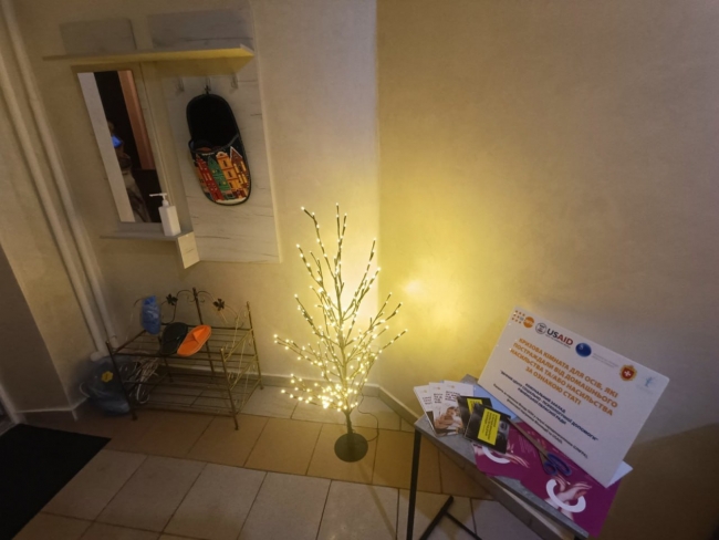 Такий простір для людей, які постраждали від насильства, створили за підтримки Фонду ООН у галузі народонаселення. Тут облаштовані дві окремі кімнати, кухня, санвузол.