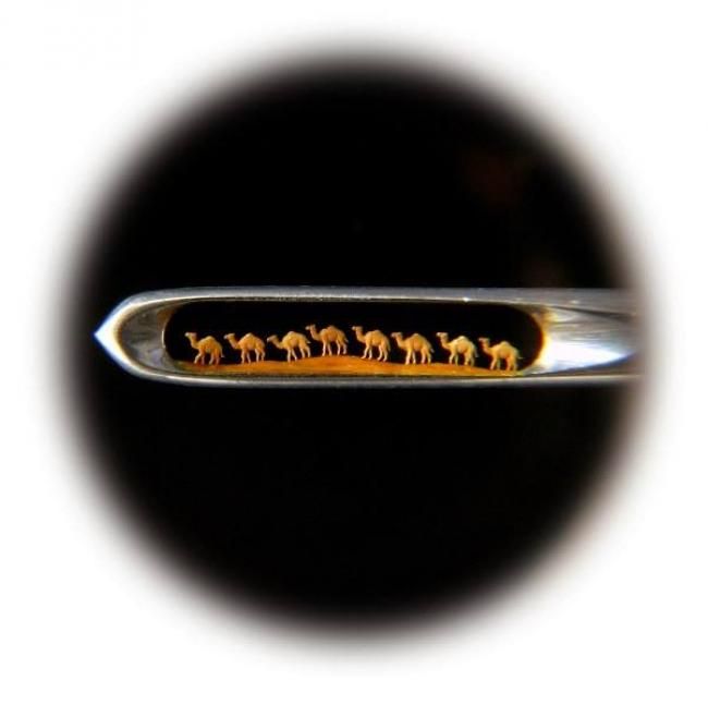 Мистецтво мікромініатюри настільки унікальне, що ним займається лише кілька людей у світі. Тому технології і інструменти для кожної роботи виготовляю сам. На кожну роботу витрачаю від місяця до трьох. Є й такі, на які пішло півроку. Наприклад, мозаїчний портрет Ісуса Христа, зроблений з понад 10 тисяч мікрокаменів. Він розміром як однокопієчна монета. На виставці є кілька скульптур, встановлені на макових зернятах чи на торці волосини. Роблю це для того, щоб людина уявила, про які масштаби ідеться, – розповів майстер мікромініатюр Володимир Казарян.