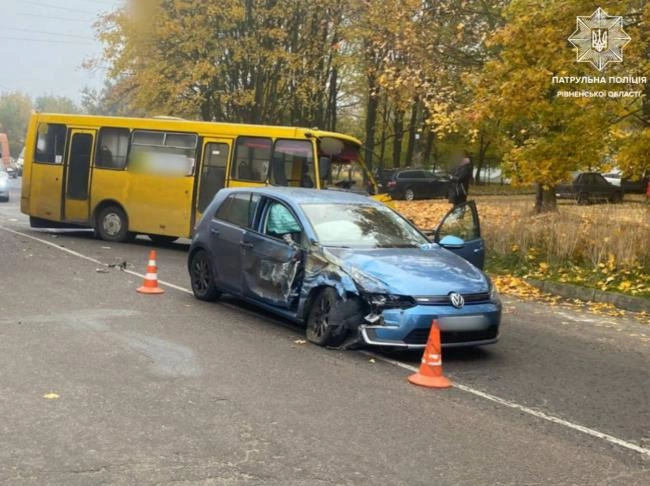 За інформацією патрульної поліції, зіткнулись автомобіль Volkswagen Golf та маршрутка. Від удару в маршрутки вилетіло лобове склло.