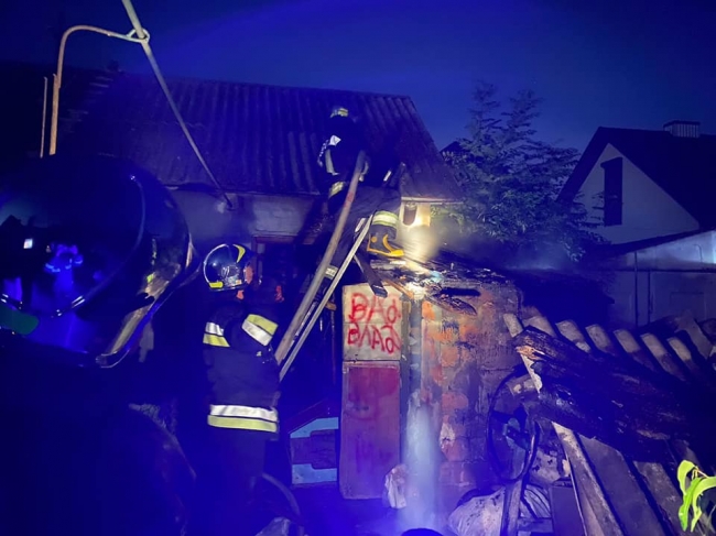 Вогнем знищено бетонозмішувач та пошкоджено 1м² покрівлі господарської будівлі.
