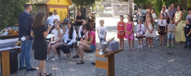 На території Покровського собору у Рівному вручили подарунки для першокласників – дітей загиблих та поранених воїнів. Їм подарували шкільне приладдя, солодощі та Біблію.