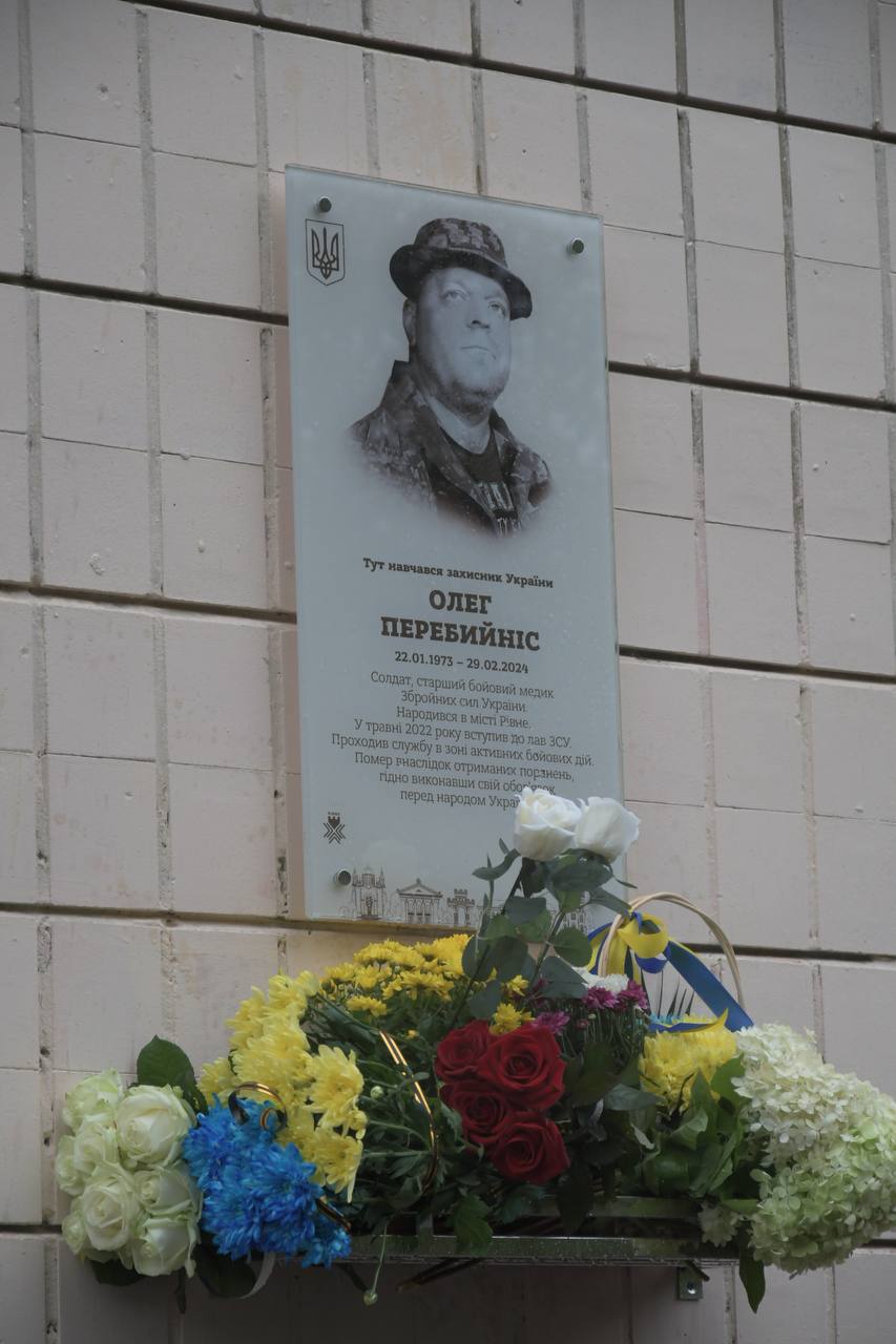 – Сьогодні на фасаді Рівненського ліцею №13 відкрили меморіальну дошку на честь загиблого Героя – Олега Перебийноса, – повідомив в.о.міського голови Віктор Шакирзян.