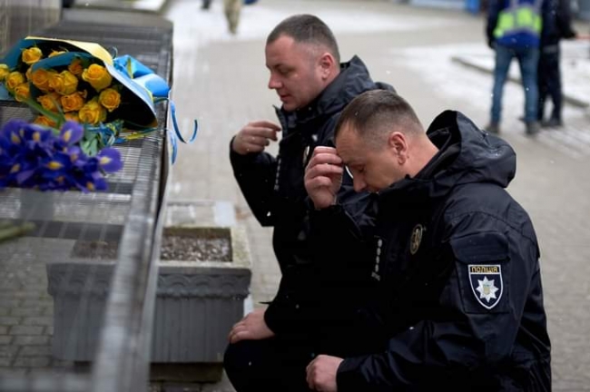 Керівник поліції області Олександр Ганжа разом із заступниками та учасниками заходу поклали квіти до Дошки пам’яті Героям Небесної Сотні, Героїв АТО.