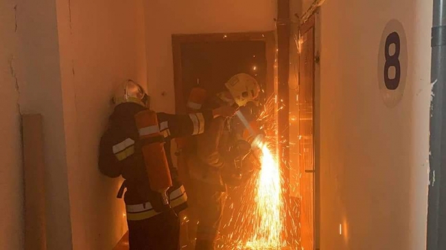 Прибувши за вказаною адресою одна група рятувальників дісталася до помешкання по сходовій клітині, а інша група піднялася по пожежній автодрабині.