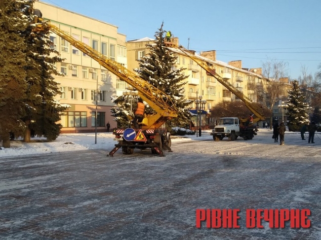Новорічну фотозону вже прибрали. Зараз бригада займається скручуванням святкових вогнів.