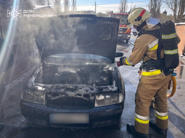 – Сьогодні о 09:35 до рятувальників надійшло повідомлення про загоряння моторного відсіку легкового автомобіля по вул. Романа Шухевича. Рятувальники, що прибули на місце подали на ліквідацію вогнегасні речовини. Пожежу вдалося швидко ліквідувати. Проте вогонь встиг знищити моторний відсік автомобіля Skoda Octavia Tour. Жертв та постраждалих немає, – повідомили у ГУ ДСНС Рівненщини.
