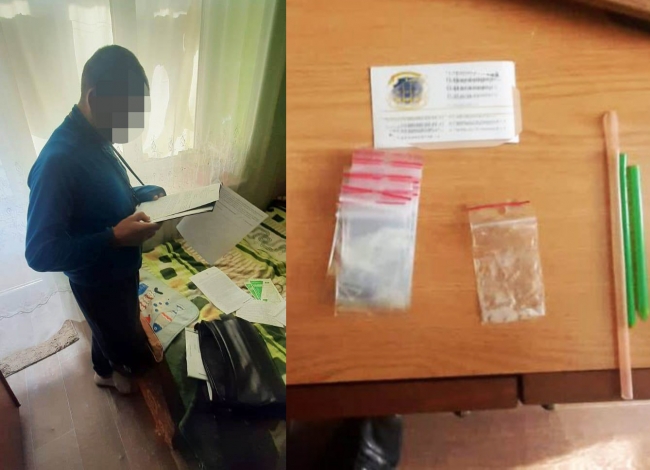 Під час санкціонованого обшуку у його помешканні поліцейські виявили та вилучили поліетиленовий пакетик із метамфетаміном, пристрої для його вживання, електронні ваги та порожні сліп-пакети. Крім того, вилучено 200 гривень, отриманих незаконним шляхом.