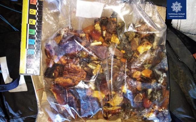 Як повідомляє патрульна поліція Рівненщини, керманич та пасажири, які знаходилися в авто, помітно нервували. В результаті проведення поверхневої перевірки на підставі ст.34 Закону України «Про Національну поліцію» в багажнику автомобіля інспектори знайшли картонну коробку з пакетом у якому знаходилося каміння, ззовні схоже на сирець бурштину.