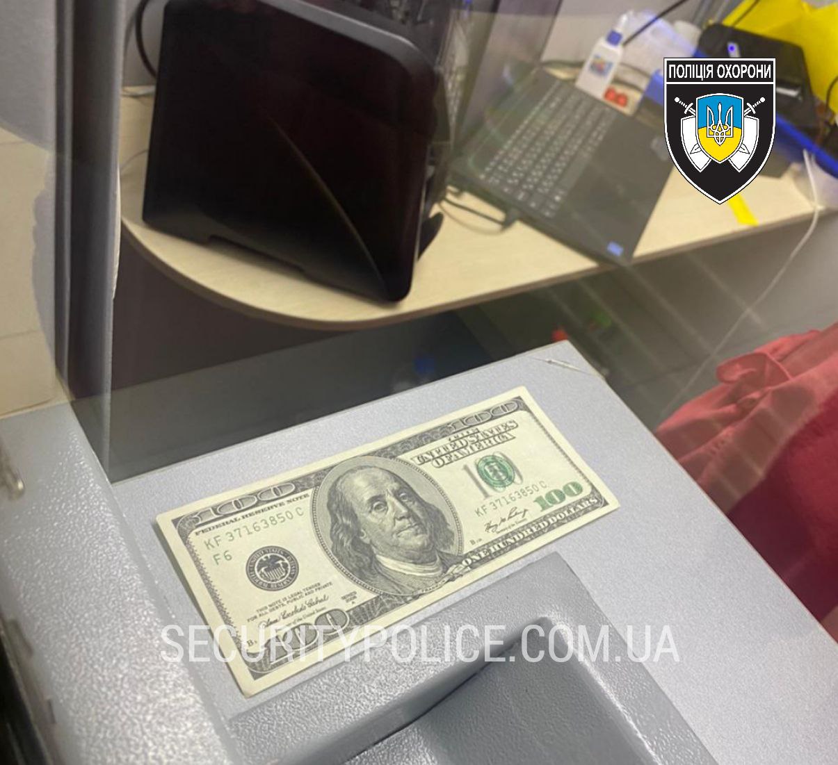 Правоохоронці з’ясували, що жінка прийшла до пункту обміну валют з метою обміняти стодоларову купюру на гривні. Працівниця обмінника помітила фальшиву банкноту та натиснула тривожну кнопку. Поліцейські охорони викликали слідчо-оперативну групу для з’ясування всіх обставин події.