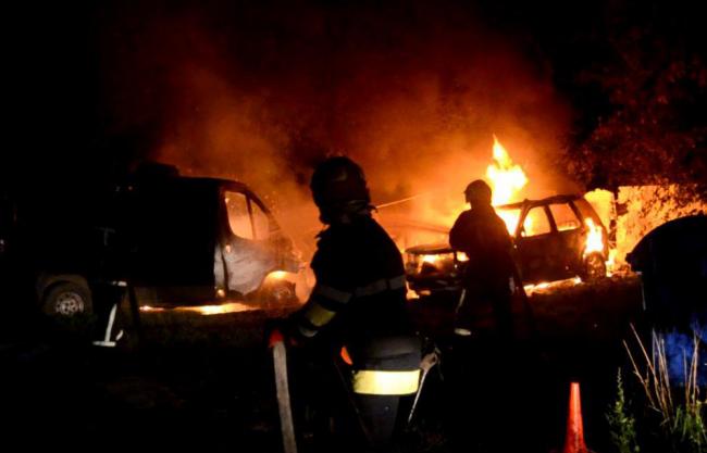 Пожежники гасили полум’я близько півгодини. Вогонь знищив автомобілі «Range Rover», «Opel Vectra» та пошкодив моторний відсік та салон мікроавтобуса «Fiat Ducato».