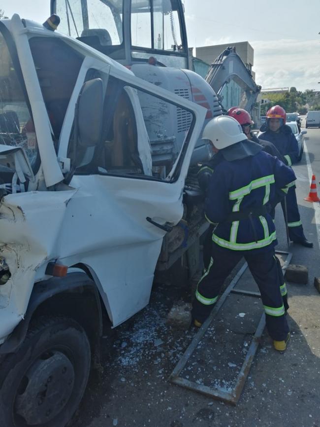 До приїзду рятувальників водія з понівеченої кабіни вантажного автомобіля, що перевозив екскаватор, виятгунли свідки. Бійці ДСНС до приїзду швидкої медичної допомоги надали травмованому чоловіку першу долікарську допомогу. Потому зняли клеми акумулятора понівеченого авто та змили паливно-мастильні матеріали з проїжджої частини дороги. Обставини цієї пригоди встановлюють поліцейські. До надання допомоги було залучено 2 одиниці спецтехніки ДСНС та 8 рятувальників.