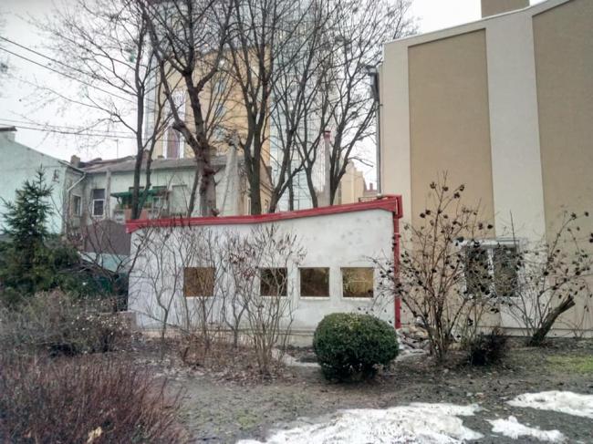 Знаходиться вона одразу за пам’ятником Симона Петлюри. Цю прибудову вона назвала «доліпкою» та додала у Facebook, що це самозахват комунальної землі з подальшим намаганням узаконити крадіжку.