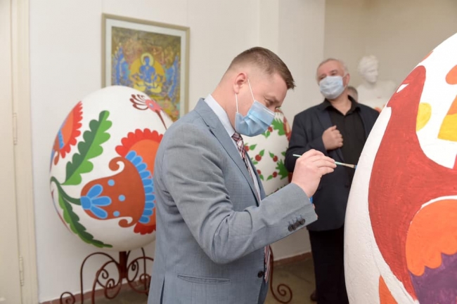 – Сьогодні у стінах художньої школи також долучився до розпису писанок, – розповів міський голова. – Звісно, не так впевнено тримаю пензлі в руках, як наші вихованці мистецької школи, проте намагався внести і свою лепту у створенні писанкового саду, який стане окрасою нашого міста у Великодні свята.