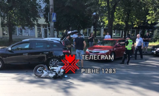 Як повідомляють очевидці на телеграм-каналі Рівне1283, в ДТП потрапив мотоцикліст. Схоже, він був кур’єром, бо поруч на дорозі лежить жовта термосумка. В якому він стані, наразі невідомо.