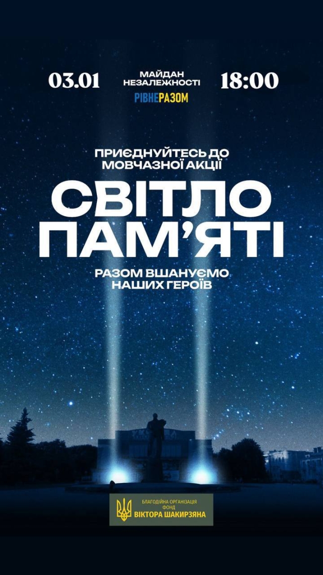Організатори мовчазної акції – Громадська організація “Рівне Разом” та Благодійна організація «Фонд Віктора Шакирзяна» запрошують усіх долучитися до вшанування памʼяті загиблих воїнів…
