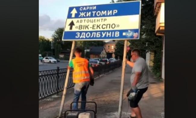 Як пише у своєму Facebook міського голови Рівного Віталій Герман, зробили це на вимогу рівнян. Бо вказівник заважав пішоходам.