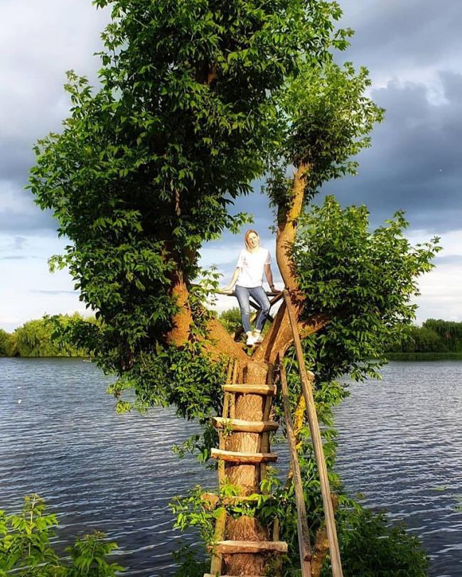 Це дерево зі сходинками до крони, яке наче нависає над водною гладдю.