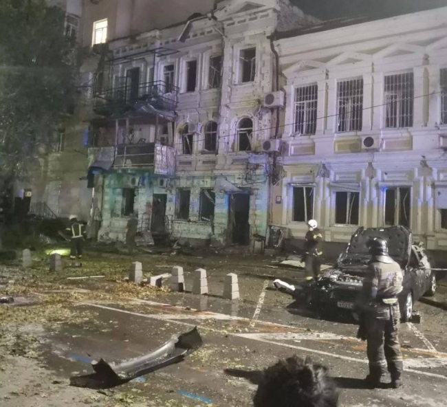 Дрони впали неподалік будівлі штабу Південного військового округу.