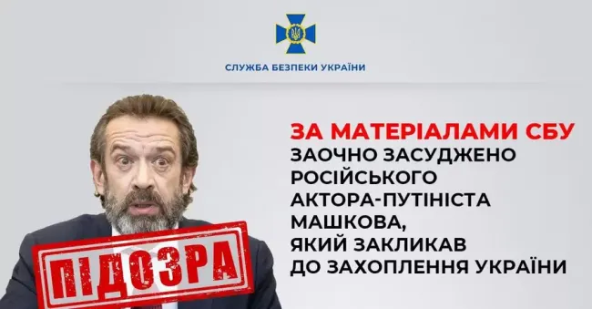 Завдяки доказовій базі Служби безпеки 10 років ув’язнення заочно отримав російський актор Володимир Машков, який вихваляє війну РФ проти України. Також у зловмисника конфісковано квартиру площею 100 м² в елітному районі на узбережжі Одеси… Оскільки зловмисник ховається в Росії, судовий розгляд відбувався у спеціальному судовому провадженні in absentia (за відсутності обвинуваченого), – розповіли силовики.